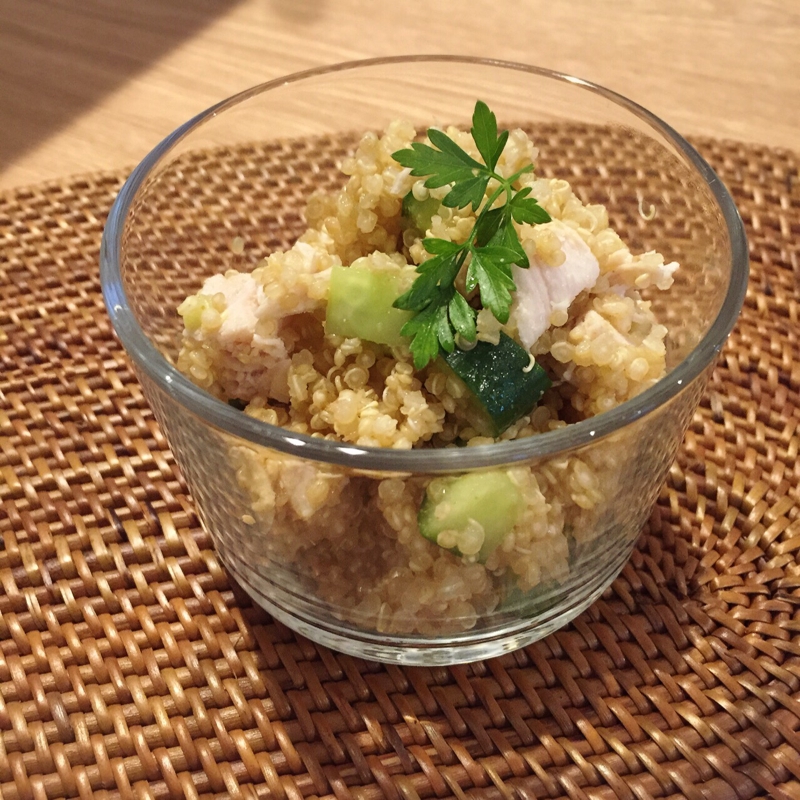 キヌアと押し麦のサラダ ダイエットにモリモリ食べられ腹持ち良く色々摂取できて好きなので作りました イメージはコストコのキヌアサラダ Sakupa 材料 二人分 キヌア 1合 押し麦 1合 きゅうり 2本 パプリカ 1 2個 パセリ 1束 玉ねぎ 1個 鶏胸肉 1 2 レシピ
